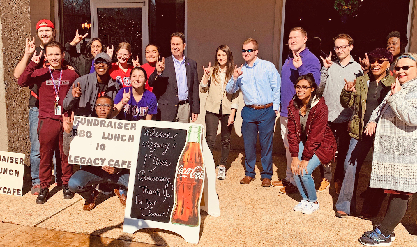 Several volunteers from Northwestern State University participated in the second annual Legacy Lunch sponsored by the Ben D. Johnson Educational Center in conjunction with Martin Luther King Jr. Day.  Volunteers from the School of Business, Theta Chi, Alpha Omicron Pi and Kappa Alpha joined Neeru Deep, instructor of psychology; NSU President Dr. Chris Maggio and Dr. Beth Prejean, assistant professor of business, in greeting guests, moving desks, taking plates to cars, holding signs and helping in the kitchen. “The Ben D. Johnson Center thanks NSU for all of the support it received,” said Zach Johnson, volunteer coordinator. The lunch benefits the Legacy Youth Development program, which teaches life skills and occupational skills to people ages 18-24 who are out of work and out of school. For more information on the Ben D. Johnson Center and/or the Legacy Café, visit bdjcenter.org.