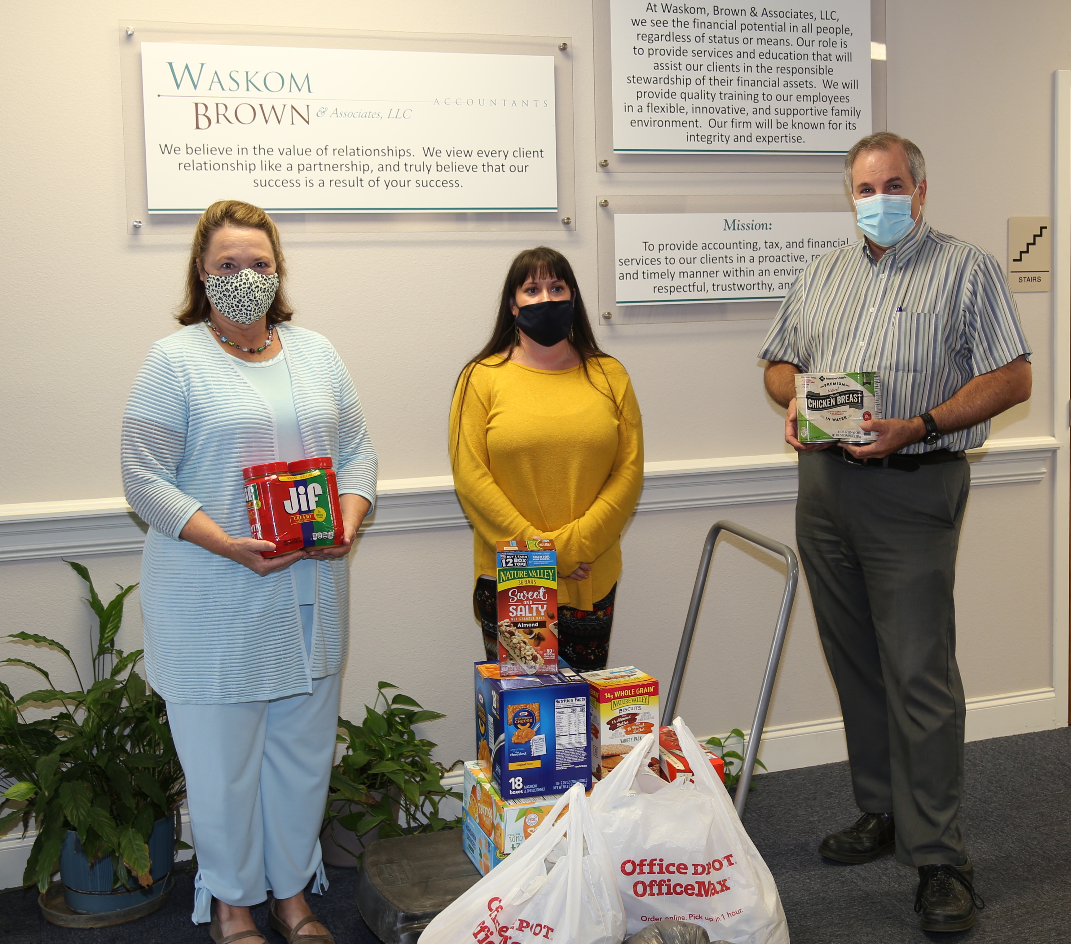 NATCHITOCHES – Waskom, Brown and Associates donated non-perishable food and other items to the Northwestern State University Food Pantry, which stocks food, personal hygiene items, toiletries and cleaning supplies to NSU and BPCC@NSU students. The company has been a long-time supporter of the NSU Food Pantry, making monthly donations to help those in the university community with food insecurity. From left are Dr. Denise Bailey, professor of social work and an advisor to food pantry volunteers, with Heather Martin, executive assistant, and David Waskom, company CEO. The NSU Food Pantry is located on the south side of Trisler Power Plant on NSU’s Central Avenue. Donations are always welcome. To obtain a list of needed items, donors should contact Bailey at garlandd@nsula.edu or Director of Student Affairs Reatha Cox at coxr@nsula.edu. Monetary donations are also accepted through the NSU Foundation. Donors can visit www.northwesternstatealumni.com and support the NSU Food Pantry in the Make A Gift section and specifying the NSU Food Pantry.